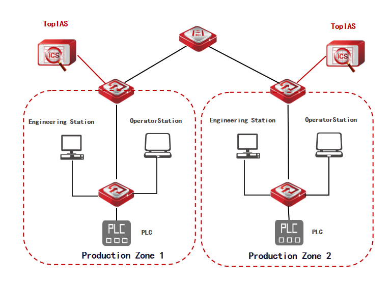 According to business function characteristics, it is deployed in bypass mode on aggregation layer switches of various areas in the production network. On one hand, it alarms, records, and analyzes abnormal communications, unauthorized operations, protocol anomalies, and key events (such as register read/write operations) of operator stations and PLCs in each business subsystem. On the other hand, it alarms and records abnormal operations, abnormal communications, and unauthorized operations from other networks, enabling timely preventive measures.